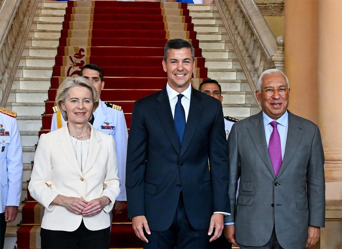 La presidenta de la Comisión Europea, Ursula von der Leyen y el presidente de Paraguay, Santiago Peña. (Foto: Prensa).