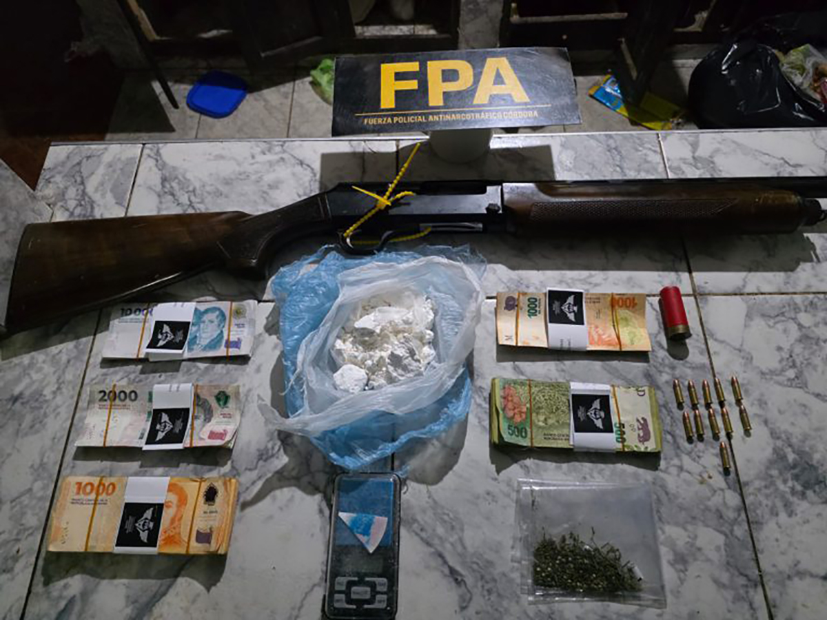 En las viviendas, se logró la incautación de 1.139 dosis de cocaína y 12 de marihuana, dinero ($948.700 y 2.500 dólares), una escopeta, 11 cartuchos calibre 22, dos balanzas digitales y elementos probatorios.