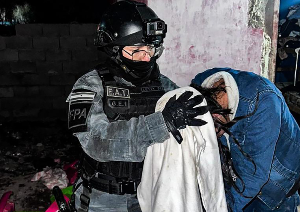 Una banda que se dedicaba a la venta de drogas en la ciudad de Arroyito, al este de Córdoba Capital. Durante el operativo, se realizaron cinco allanamientos en los barrios Mosconi, San Martín y Xanaes de esa ciudad y fueron detenidos tres hombres de 22, 23 y 24 años y una mujer de 26 (pareja de uno de ellos).