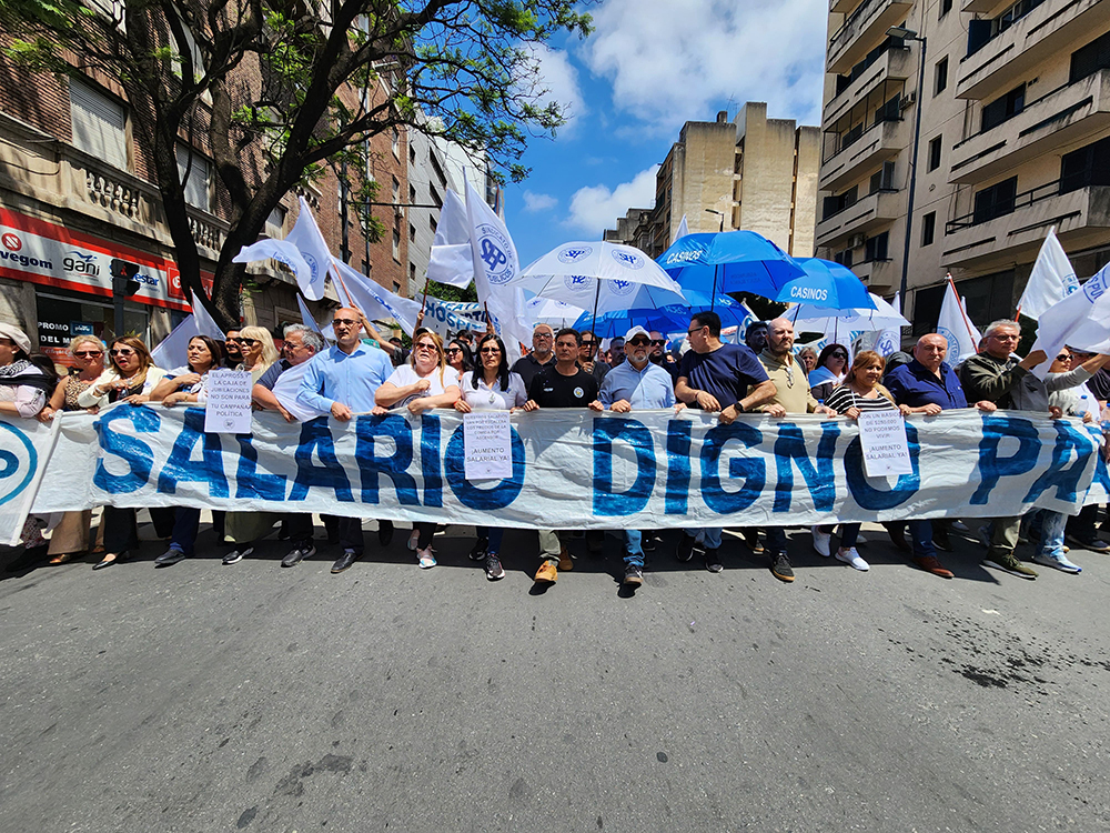 La concentración comenzó en la sede del Instituto Superior SEP San Nicolás ubicada en Maipú 354, con una multitudinaria participación de trabajadores de localidades del interior y de capital, los que marcharon hasta el Centro Cívico donde eran esperados por trabajadores de otras reparticiones provinciales, secretarios generales de gremios estatales como Legislativos, Casinos, UEPC, Músicos, Judiciales, Luz y Fuerza, Gastronómicos, y Atsa, entre otros.