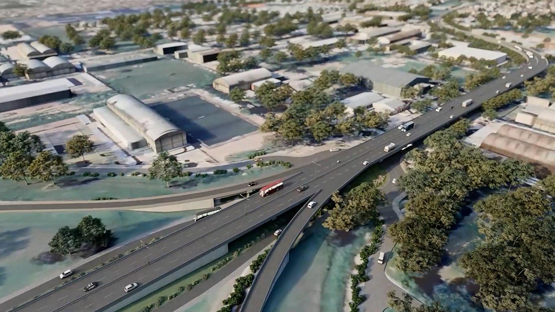 El viaducto del altonivel tendrá una longitud aproximada de 600 metros, finalizando en la vinculación con el intercambiador existente en el cruce con la Circunvalación, tanto con su calzada principal como las ramas de ingreso y egreso.