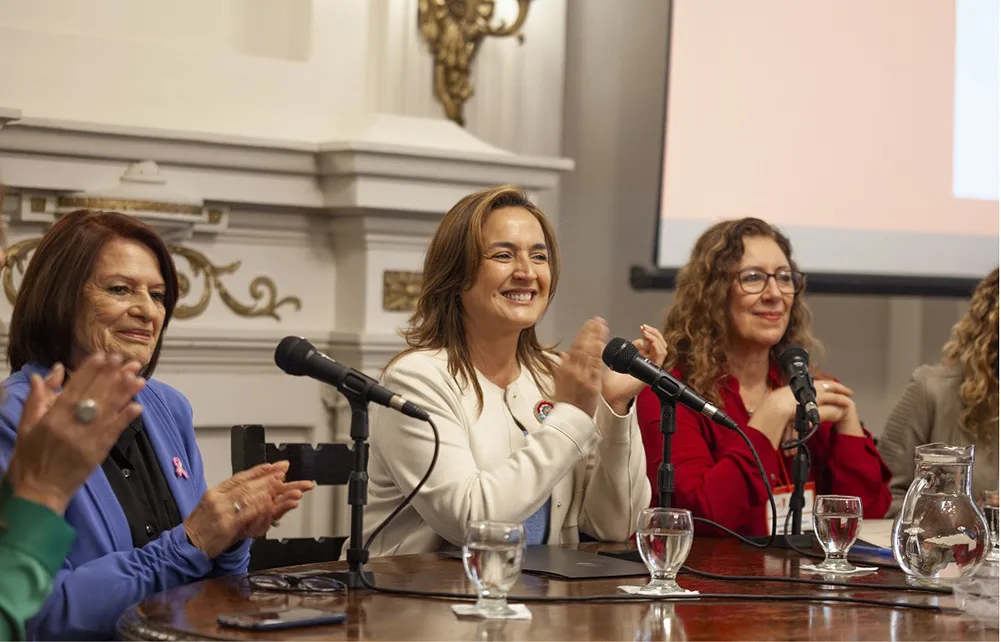 La vicegobernadora de Córdoba, Myrian Prunotto acompañó la apertura de este evento organizado por la Red Unidos x el Cáncer. Durante su discurso destacó el papel del CONICET y otros organismos estatales en la investigación científica sobre tratamientos contra el cáncer.