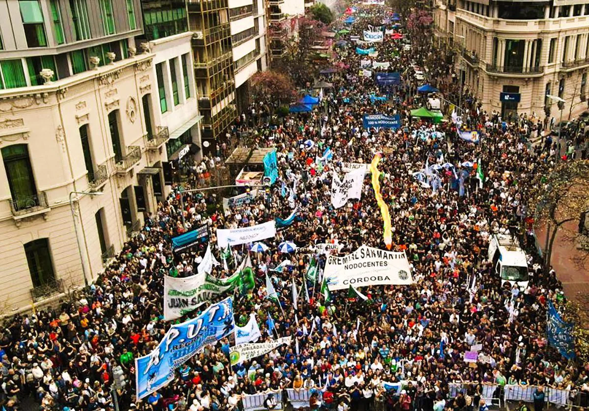 La tercera Marcha Federal Universitaria, que se replicó en distintas ciudades del país, partió desde el Monumento de la Reforma, en la ciudad universitaria de la UNC (Universidad Nacional de Córdoba). La movilización recorrió el barrio de Nueva Córdoba hasta llegar a la intersección de Hipólito Yrigoyen y Obispo Trejo, donde se realizó el acto central y se leyó el documento nacional acordado entre los rectores de las universidades nacionales, los gremios que representan a los docentes y no docentes, y la FUA (Federación Universitaria Argentina).