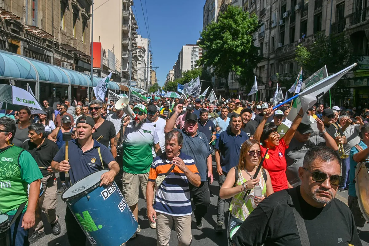 Marcha de trabajadores estatales en rechazo a un posible aumento del aporte jubilatorio.