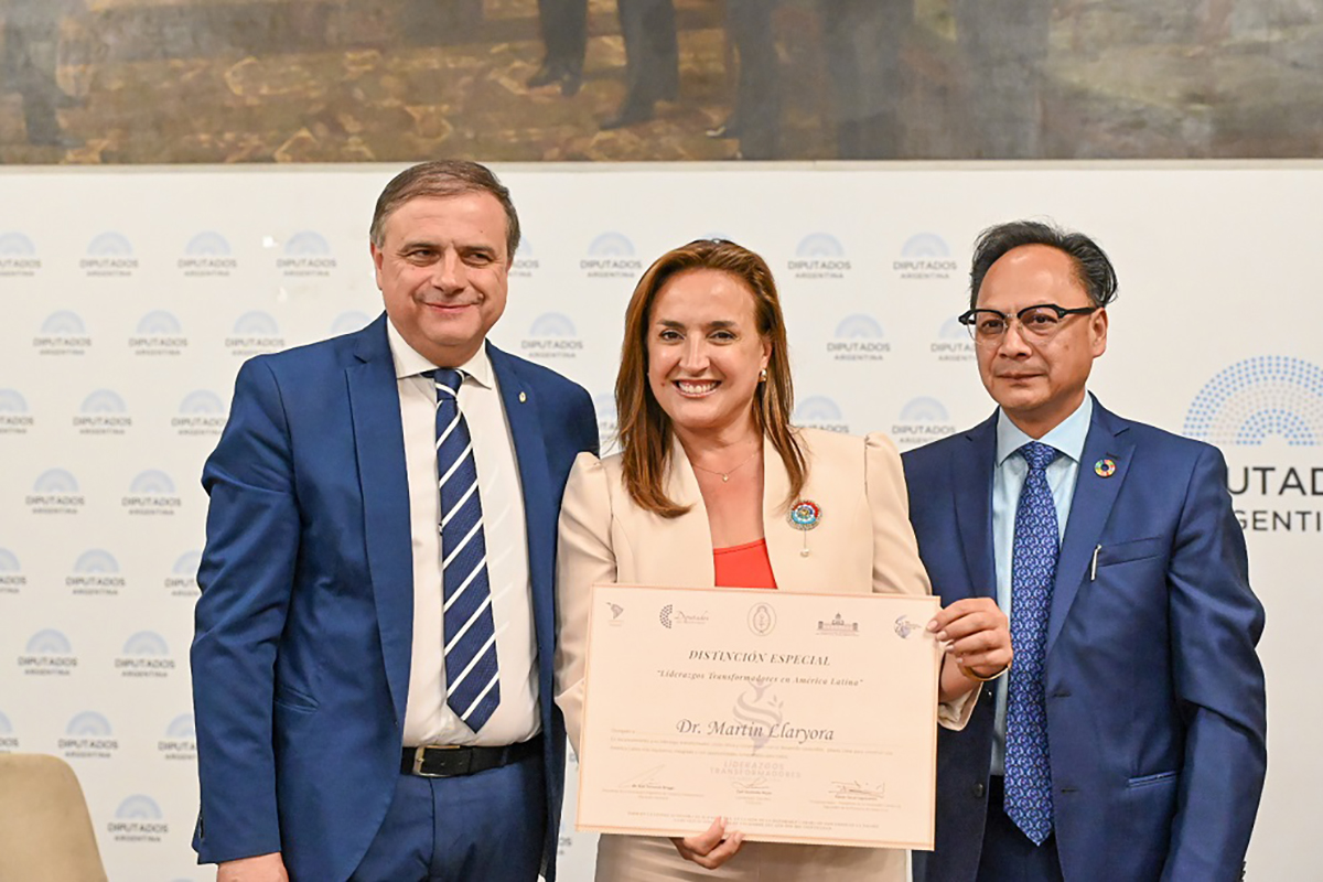 La vicegobernadora de Córdoba, Myrian Prunotto, recibió este jueves en la Cámara de Diputados de la Nación el diploma que distingue al gobernador cordobés, Martín Llaryora, como “Líder Transformador de América Latina”, galardón que otorgaron la Asociación Argentina de Derecho Parlamentario, la Vicegobernación de Santa Cruz y la Fundación para el Desarrollo Humano Sostenible de México.