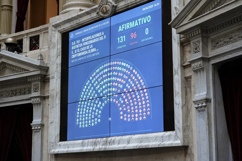El gobierno sufrió este martes en la Cámara de Diputados un duro revés con la aprobación de una comisión investigadora del escándalo de la criptomoneda $Libra; la interpelación del jefe de Gabinete, Guillermo Francos; del ministro de Economía, Luis Caputo; del ministro de Justicia, Mariano Cúneo Liberona y del titular de la Comisión Nacional de Valores, Roberto Silva; y el envío de pedidos de informes por escrito. Pese a los intentos por evitarlo, el gobierno no pudo conseguir el apoyo de los gobernadores de Córdoba, Martín Llaryora, y Catamarca, Raúl Jalil, para evitar el quórum de la sesión especial. Pese a ello, luego, tres de los cinco legisladores llaryoristas rechazaron la conformación de la comisión investigadora.
