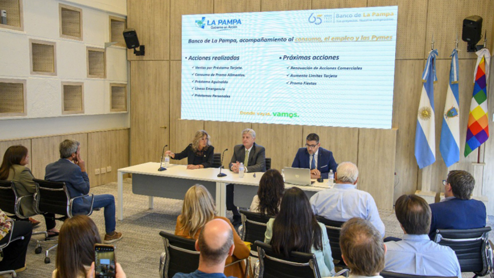 El gobernador Sergio Ziliotto, la vicegobernadora Alicia Mayoral y el presidente del Banco de La Pampa, Alexis Iviglia anunciaron nuevas promociones con motivo de las fiestas de fin de año y analizaron el impacto de las medidas que se vienen implementando desde junio a la fecha con el objetivo de sostener el consumo, el empleo y las actividades económicas en general.