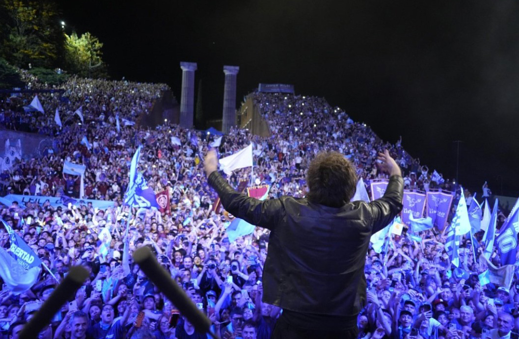 El presidente Javier Milei en el acto de cierre de campaña en Rosario. (Foto: Prensa).