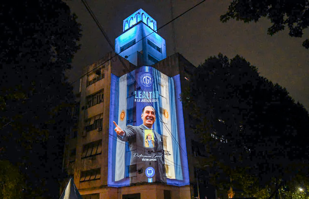 La CGT realizó este jueves un acto de conmemoración del Día de la Lealtad Peronista, que se diferenció de ceremonias de años anteriores, ya que incluyó performances teatrales, un show de música trap y una proyección de mapping sobre la fachada de su histórica sede de la calle Azopardo, todo eso bajo la temática del 17 de Octubre de 1945 que marcó el nacimiento del movimiento político creado por Juan Domingo Perón.