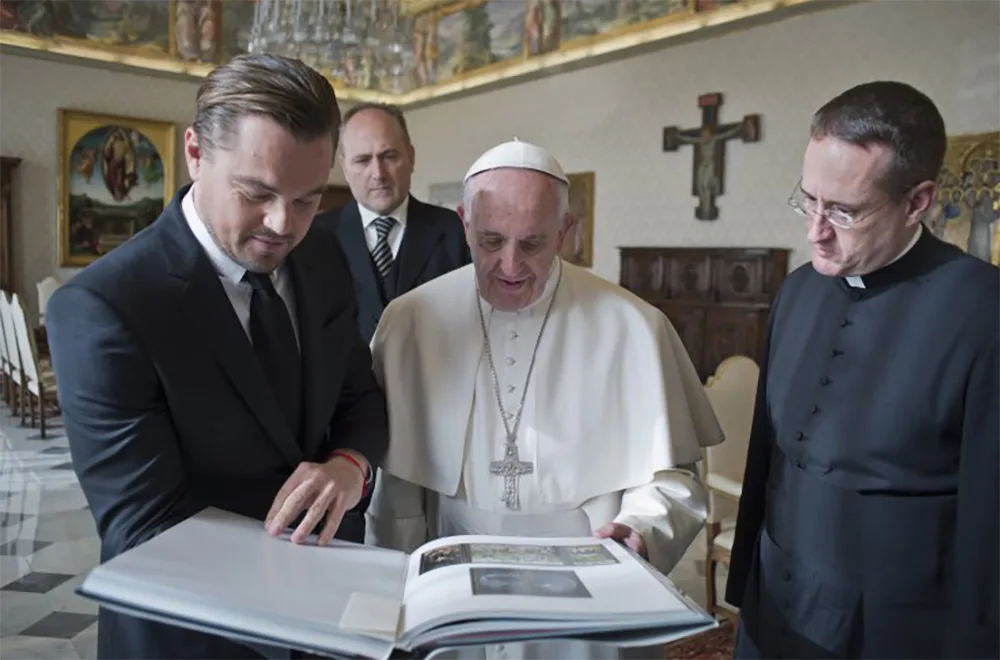 Señaló también que “durante la filmación de mi documental Antes del Diluvio en 2016, tuve el honor de sentarme con el Papa Francisco para una conversación sobre la urgente necesidad de abordar el cambio climático. Esa experiencia fue esclarecedora, profundamente conmovedora y provocadora”.