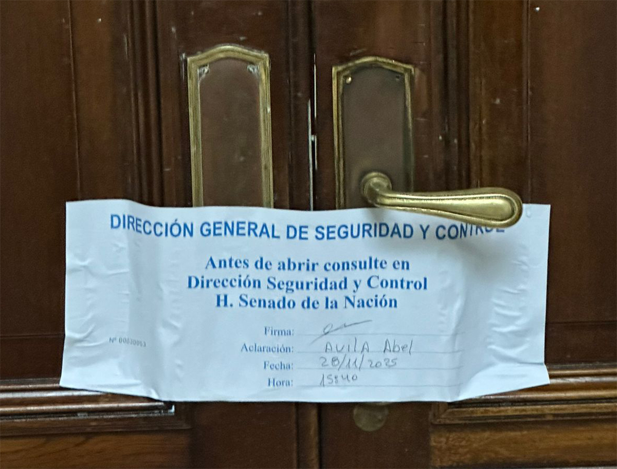 Según afirmó personal de Seguridad del Senado, “fue la propia Villarruel la que ingresó al despacho de la senadora, con personal que cambió la cerradura, colocó una faja en la puerta y retiró la placa de la senadora nacional”.