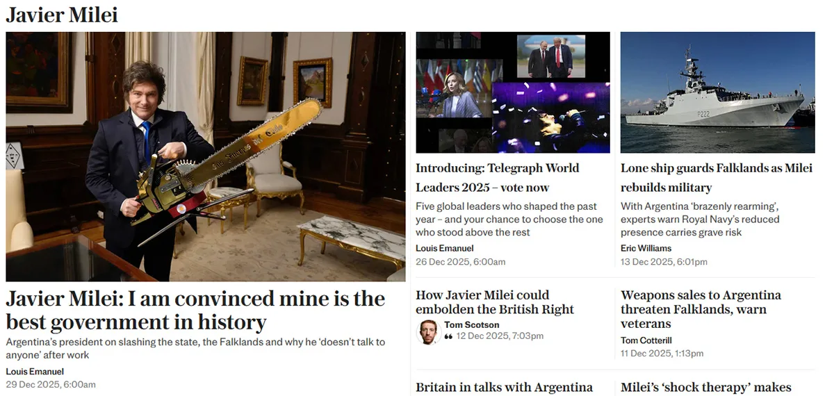 El presidente Javier Milei calificó de “innegociable” la cuestión de (soberanía) de Malvinas durante una entrevista con el diario británico The Telegraph, pero la afirmación se diluyó en la explicación que sobre el tema brindó al medio inglés: “Para el Sr. Milei, las negociaciones sobre este delicado asunto van de la mano con su postura sobre las Islas Malvinas (Falkland Islands). Tras años de amenazas bajo gobiernos anteriores, afirma que el territorio solo debería regresar a Argentina mediante negociación y cuando los isleños así lo deseen”.