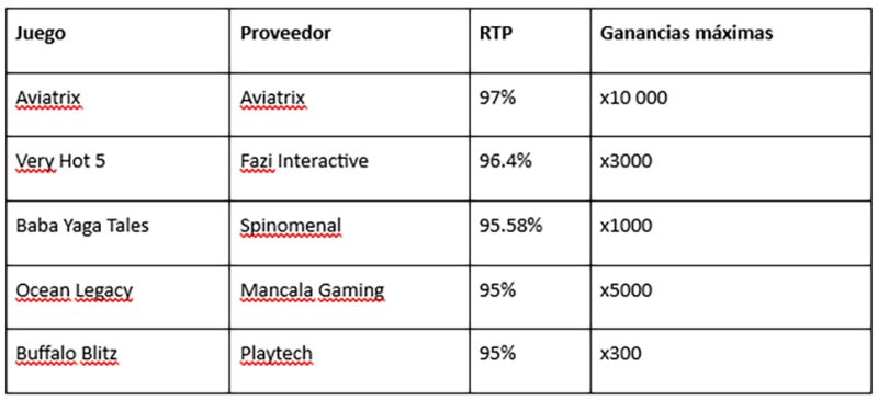 Al sumergirte en el mundo de los slots online, encontrarás una gran selección de títulos de proveedores como Playtech, Evolution o Spinominal. Todos con certificados de equidad de RNG otorgados por GLI, eCogra o iTechLabs. Entre el TOP 5: