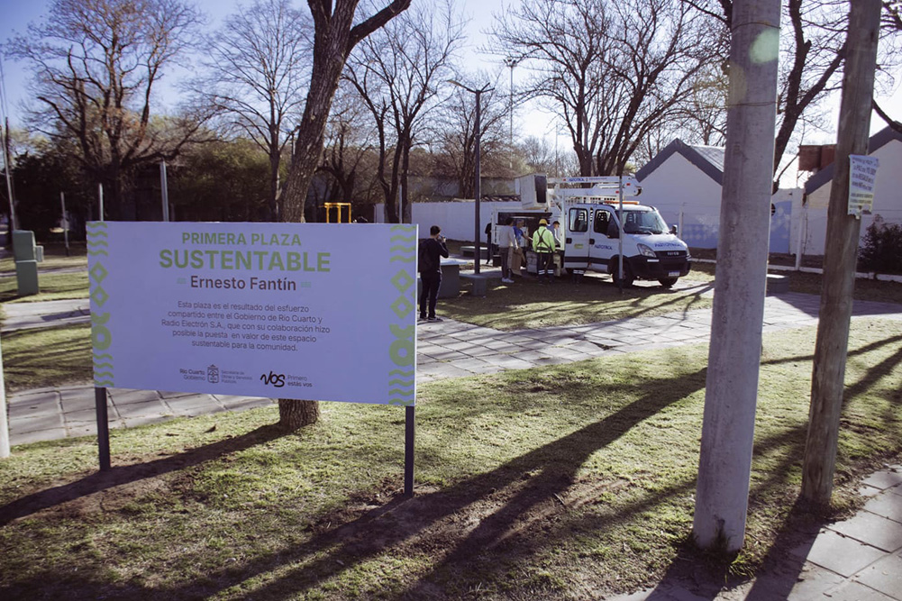 La plaza Ernesto Fantín, está ubicada en Banda Norte, frente al Parque Sarmiento. En la oportunidad, el intendente afirmó que “estos paneles solares significan un ahorro en el consumo de energía, pero sobre todo representan un paso fundamental en nuestro compromiso con el ambiente. Estamos modernizando la ciudad, cuidando nuestros recursos y ofreciendo a los vecinos espacios públicos de calidad”.