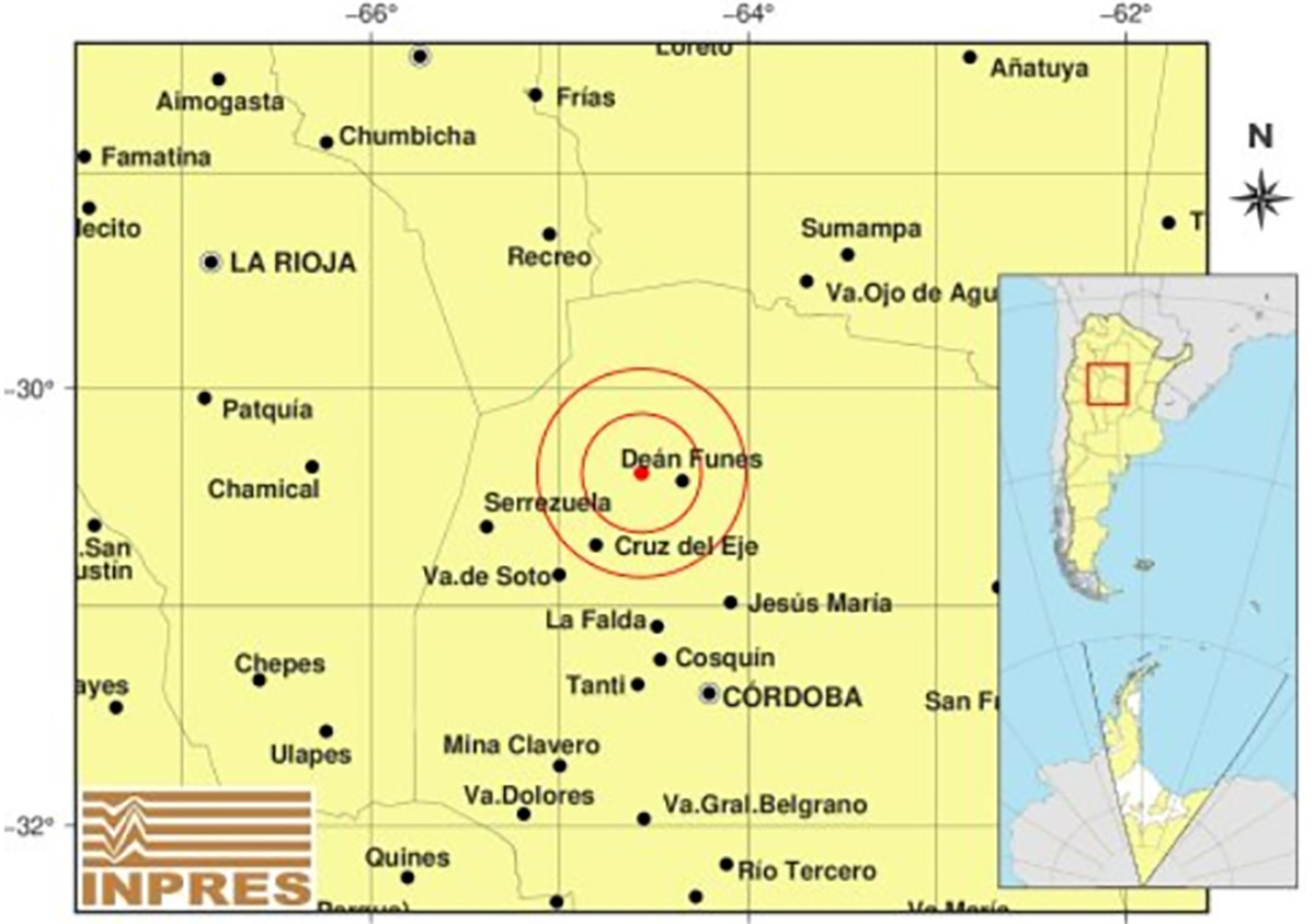 Un movimiento telúrico de magnitud 4,4 en la escala de Richter sacudió este martes la provincia de Córdoba, con epicentro cercano a la localidad de Deán Funes, en el norte provincial. El fenómeno, que generó reportes de percepción en múltiples zonas, ocurrió a las 20:07 y se registró a una profundidad de 30 kilómetros, según datos oficiales del Instituto Nacional de Prevención Sísmica (Inpres). No se reportaron víctimas ni daños materiales.