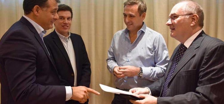 El ex intendente de Río Cuarto, Juan Jure, los legisladores provinciales Sebastián Peralta y Dante Rossi, el tribuno de Cuentas de San Francisco, Cristian...