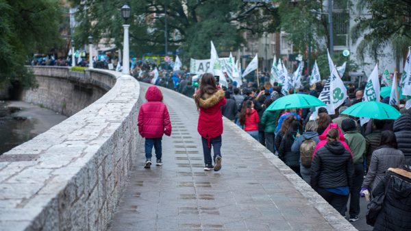 Miles de docentes jujeños, junto con trabajadores estatales y municipales más integrantes de organizaciones sociales marcharon, este lunes en San Salvador de Jujuy en...