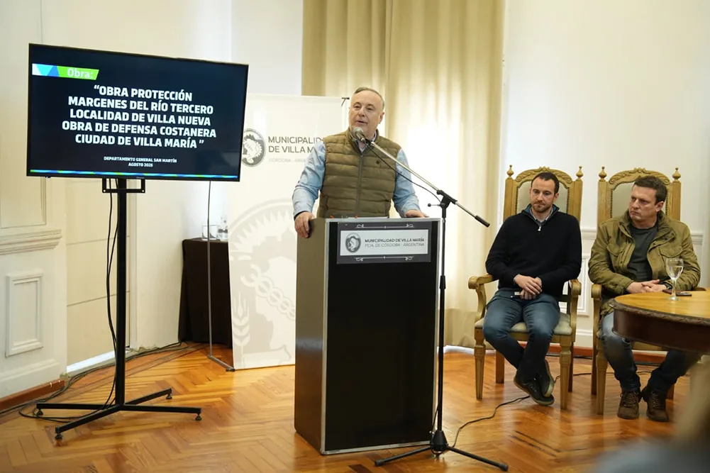 El encuentro contó con la presencia del intendente Eduardo Accastello; el secretario de Infraestructura Hídrica y Gasífera de la Provincia, Edgar Castello; el vocal de la Administración Provincial de Recursos Hídricos, Bruno Aiassa; el secretario de Infraestructura y Desarrollo Sostenible de Villa María, Rodrigo Fuyana; y el secretario de Gobierno de Villa Nueva, Amael Saúl.